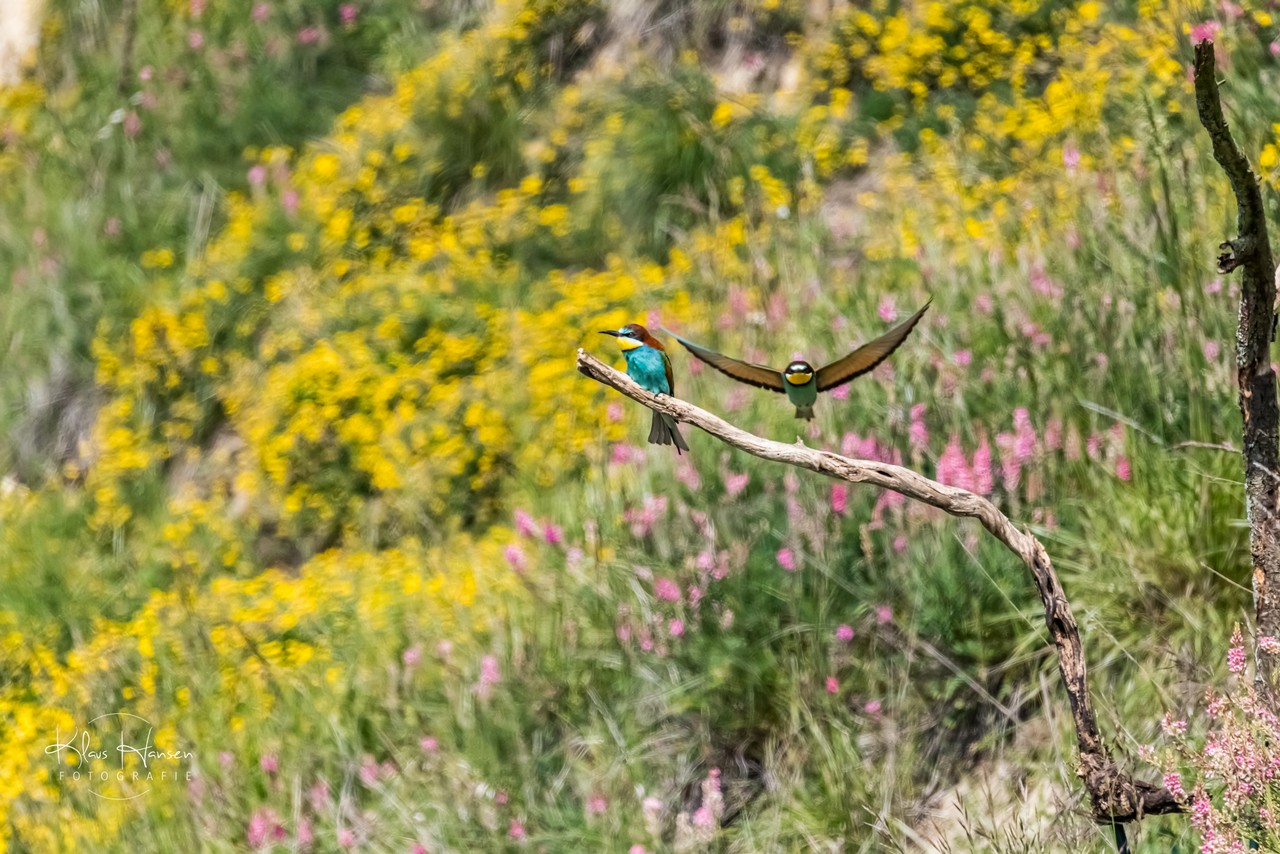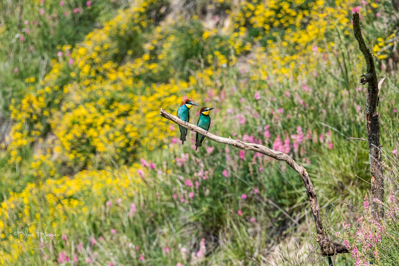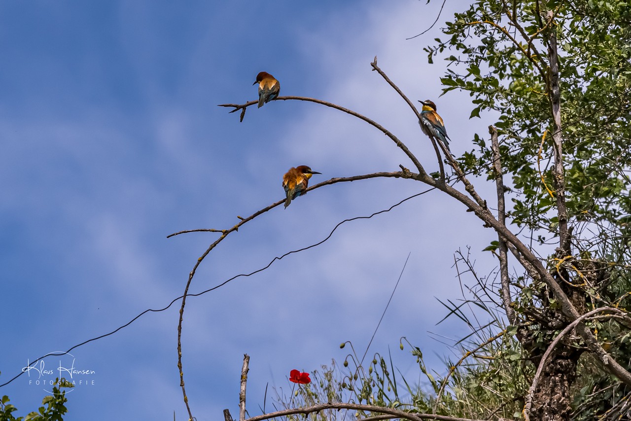 Mai 2020 Bienenfresser und Wiedehopf die am Kaiserstuhl über den Sommer kommen um ihre Jungen zu bekommen und dann im Winter wieder nach Afrika fliegen. Sie jagen Bienen, Hummel, Libellen und die Blaue Holz Biene die auch aus dem Mittelmeer hierkommt.