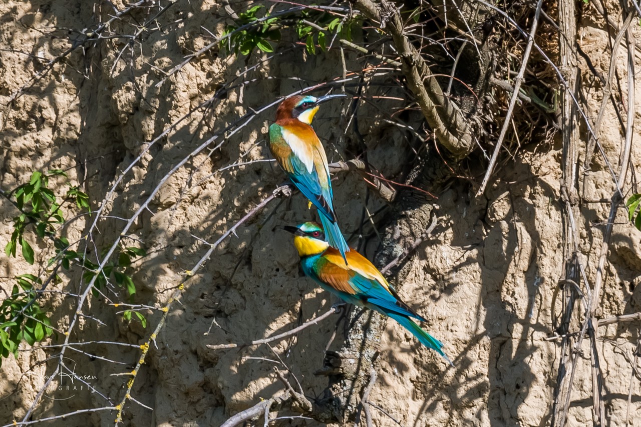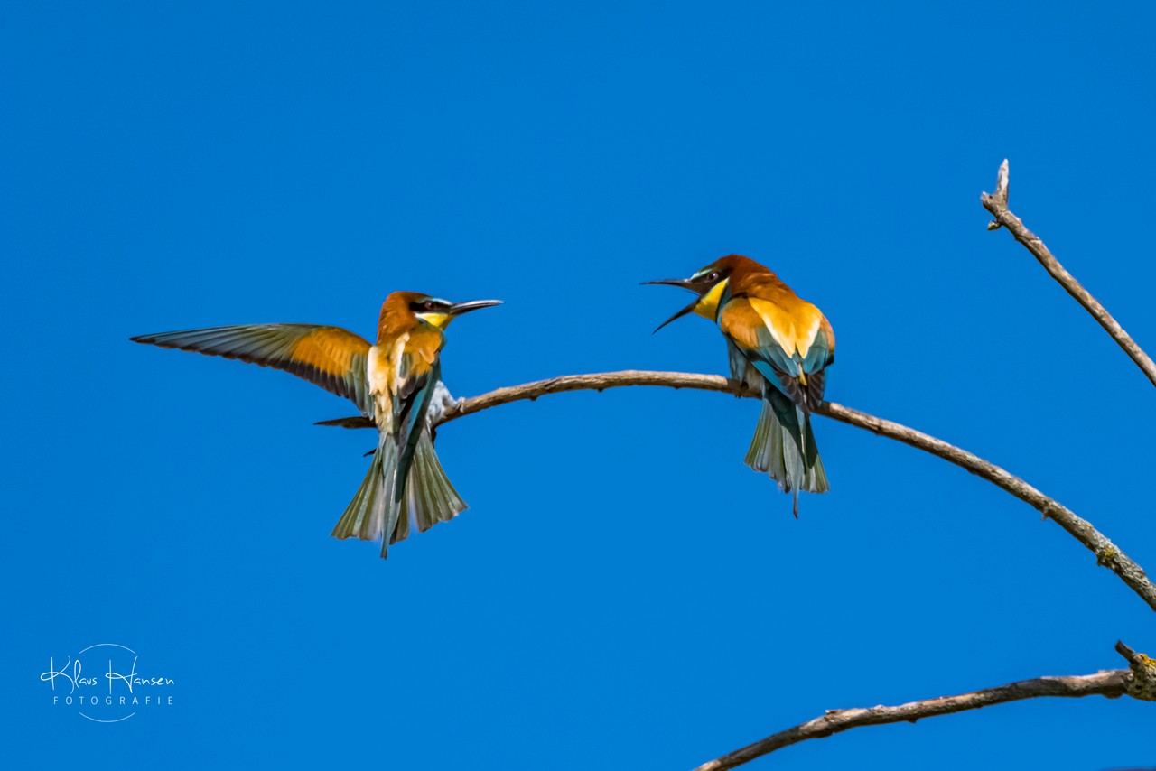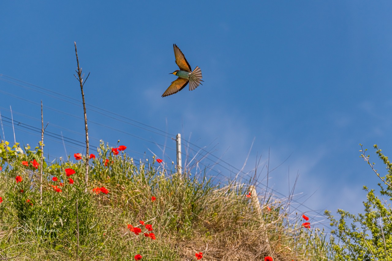 Mai 2020 Bienenfresser und Wiedehopf die am Kaiserstuhl über den Sommer kommen um ihre Jungen zu bekommen und dann im Winter wieder nach Afrika fliegen. Sie jagen Bienen, Hummel, Libellen und die Blaue Holz Biene die auch aus dem Mittelmeer hierkommt.