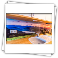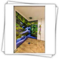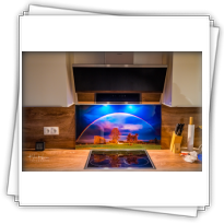 So könnte ihr Bad oder Küche und das Wohnzimmer auch bald aussehen. Als Glasbild oder Leuchtbild in Ihrem Zuhause oder Büro.