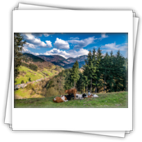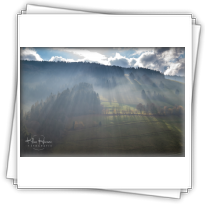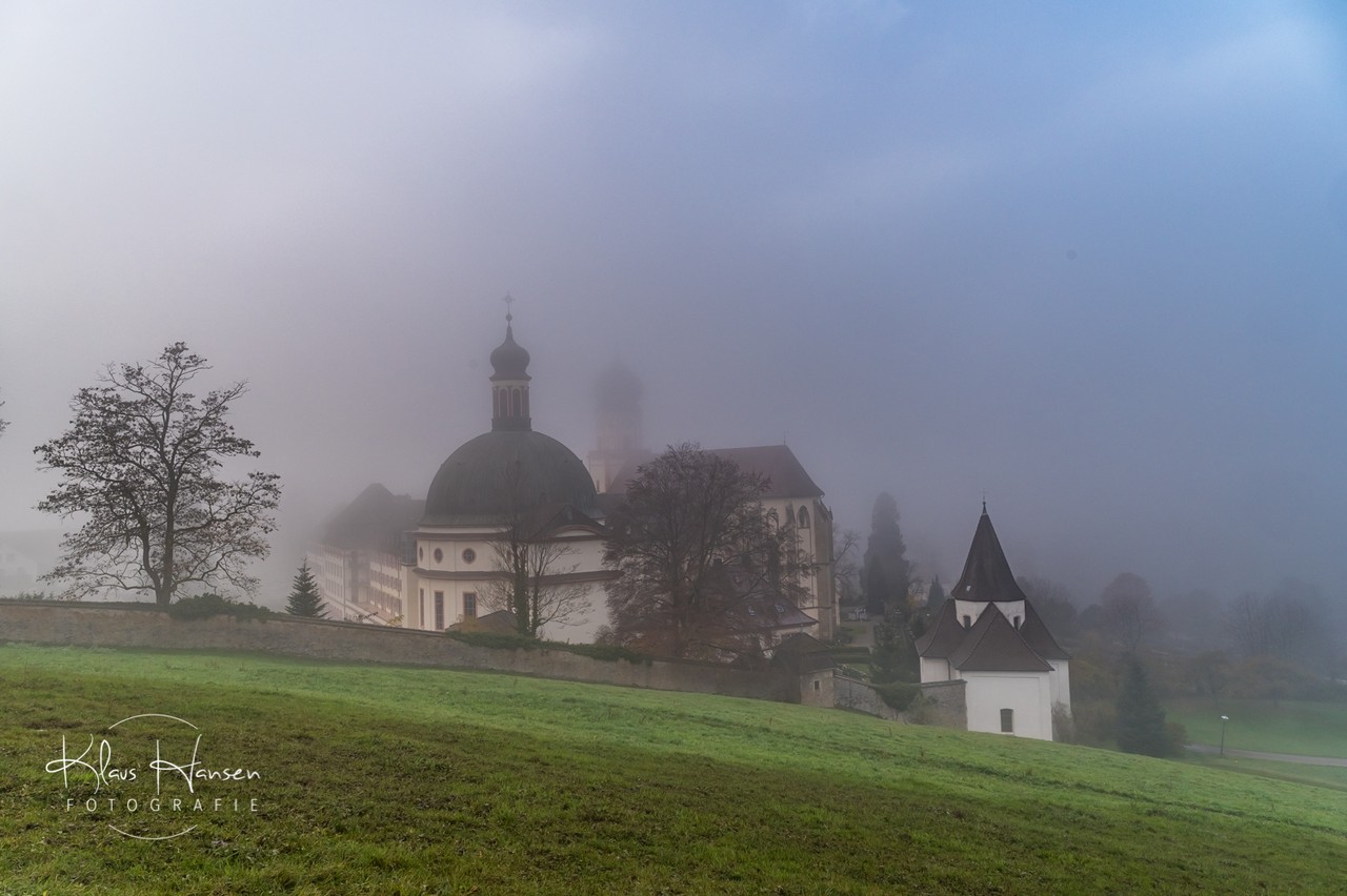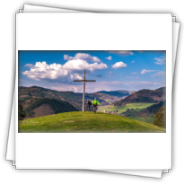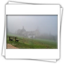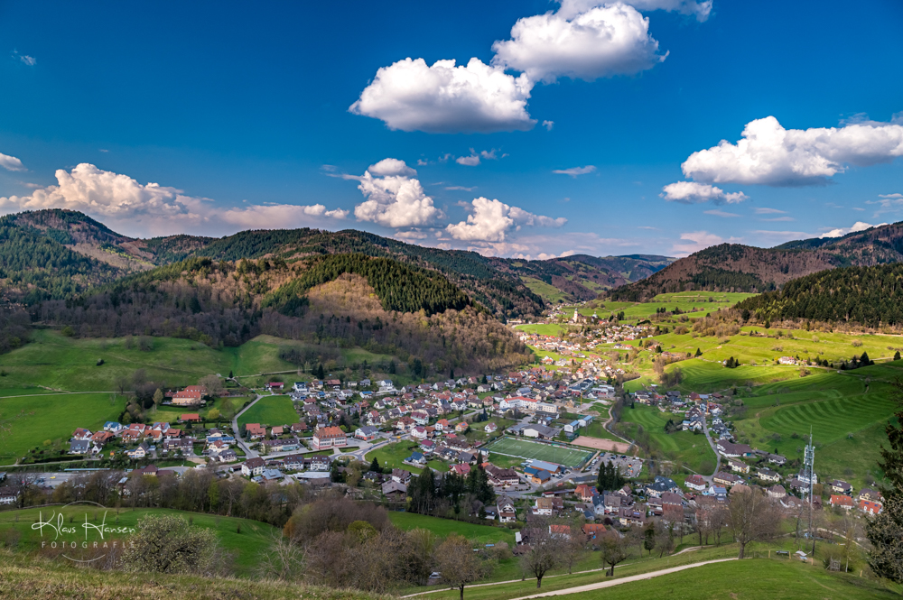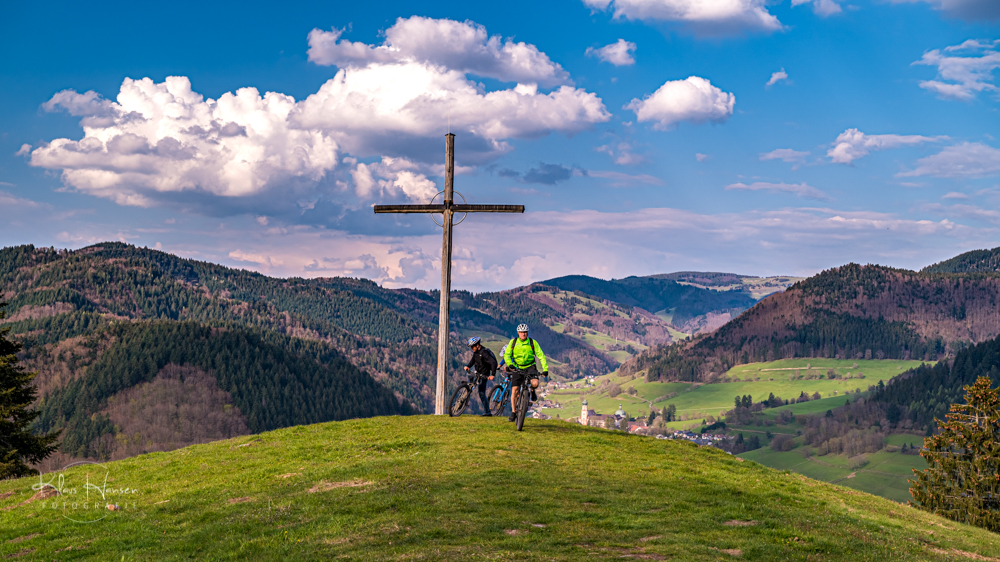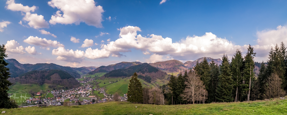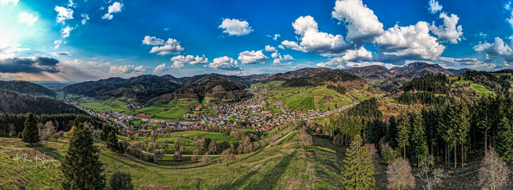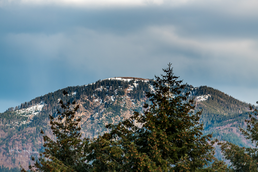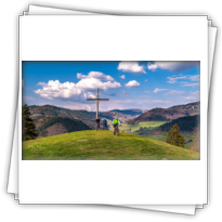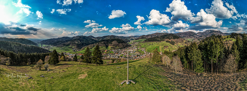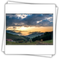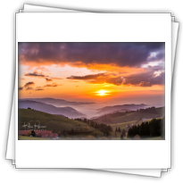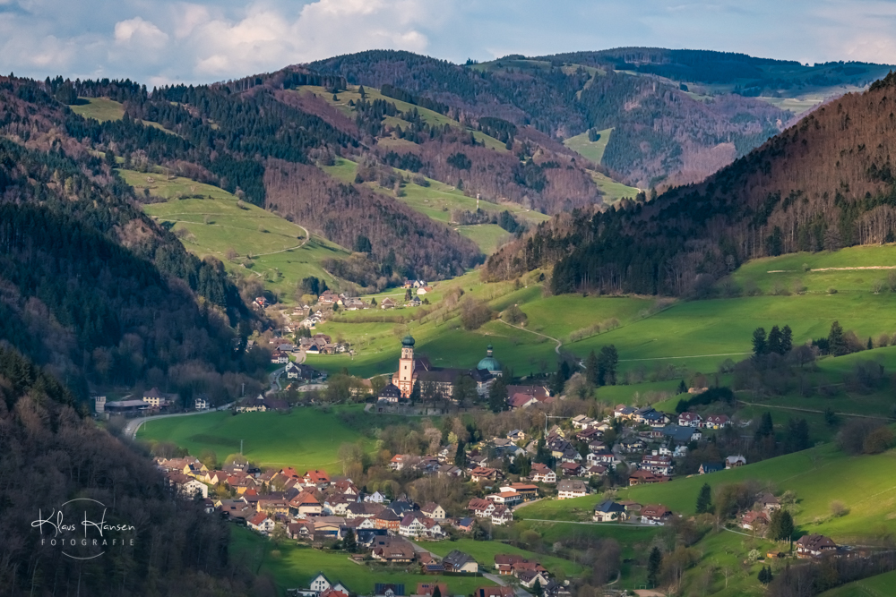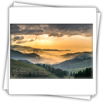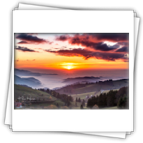 Das Münstertal Blick vom Köpfle St. Trudpert und Schauinsland an einem Tag. Im Nebel unten und oben der Sonnenuntergang über dem Wolkenmeer