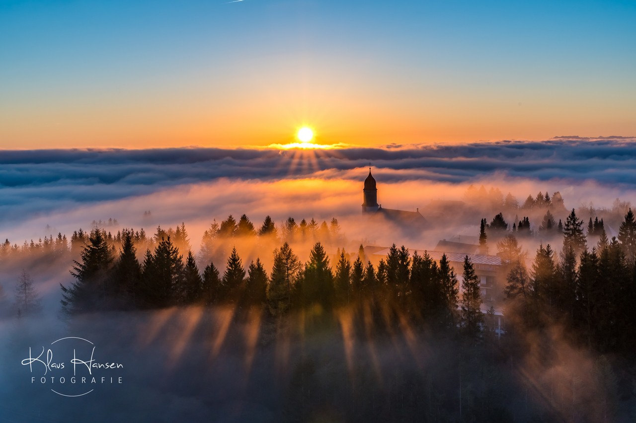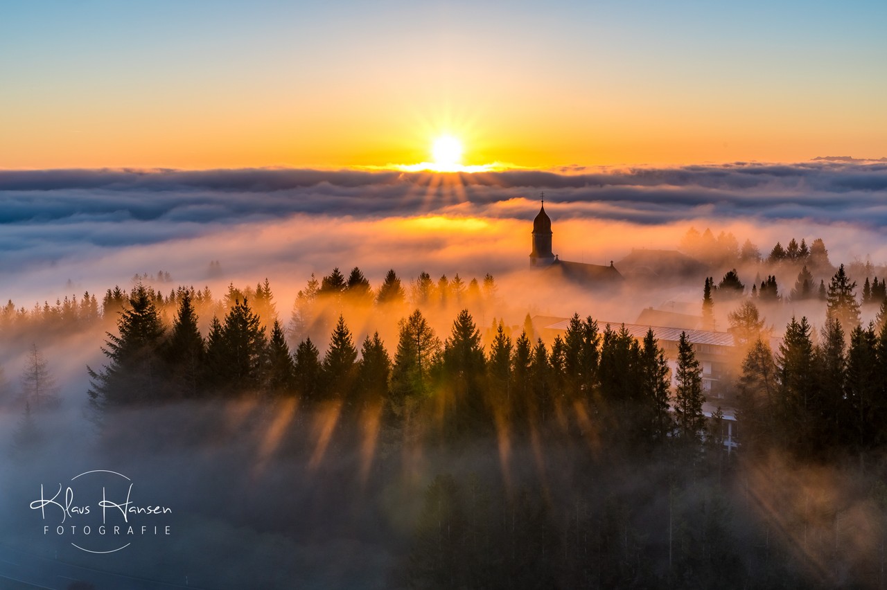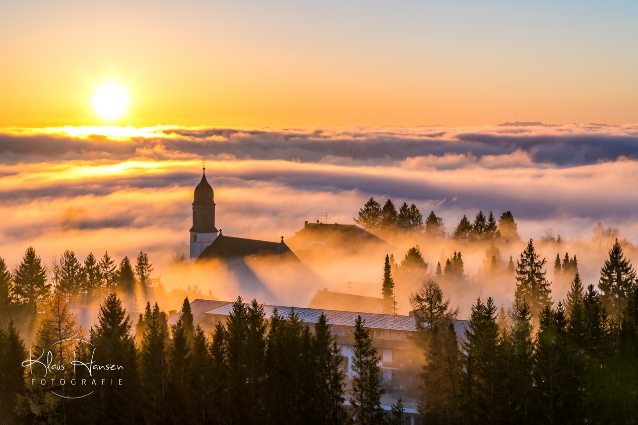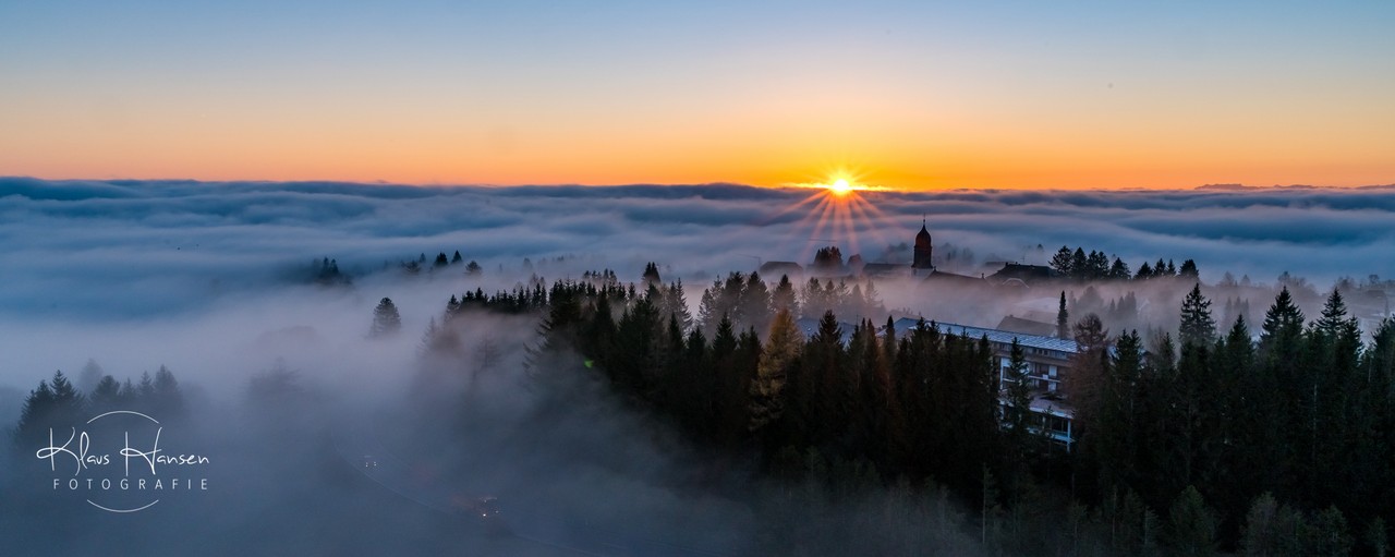 Unglaublicher Sonnenaufgang in Höchenschwand "das Dorf am Himmel" zur Abwechslung "Dorf im Nebel"!